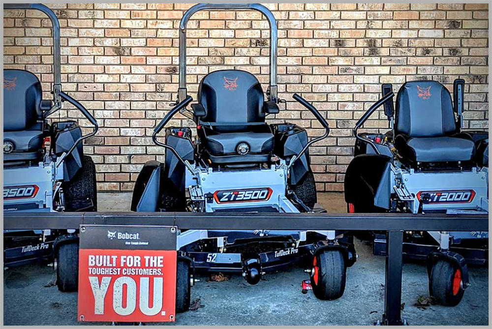 Bob-Cat Mowers in Hemphill, Texas SERVING NACOGDOCHES, TEXAS DURABILITY - QUALITY OF CUT - EASE OF OWNERSHIP When you purchase a BOB-CAT® mower, you count on it to get the job done. With each mower they make, they strive to provide the best in quality of cut, durability, and ease of ownership. And, that means combining innovative technology, quality materials, expert design, and a fierce desire to be the best. The result is a product you can trust when it matters most. Every product is designed and built for unmatched durability. American ingenuity, craftsmanship and hard work make sure your new BOB-CAT® can take whatever you can dish out. www.bobcatturf.com Please understand that the mowers you see on this page are just examples of what we carry and may not be in stock at our store. However, we can special order any make or model of mower that we do not have in stock at our store. Call or stop by our showroom to discuss your options.